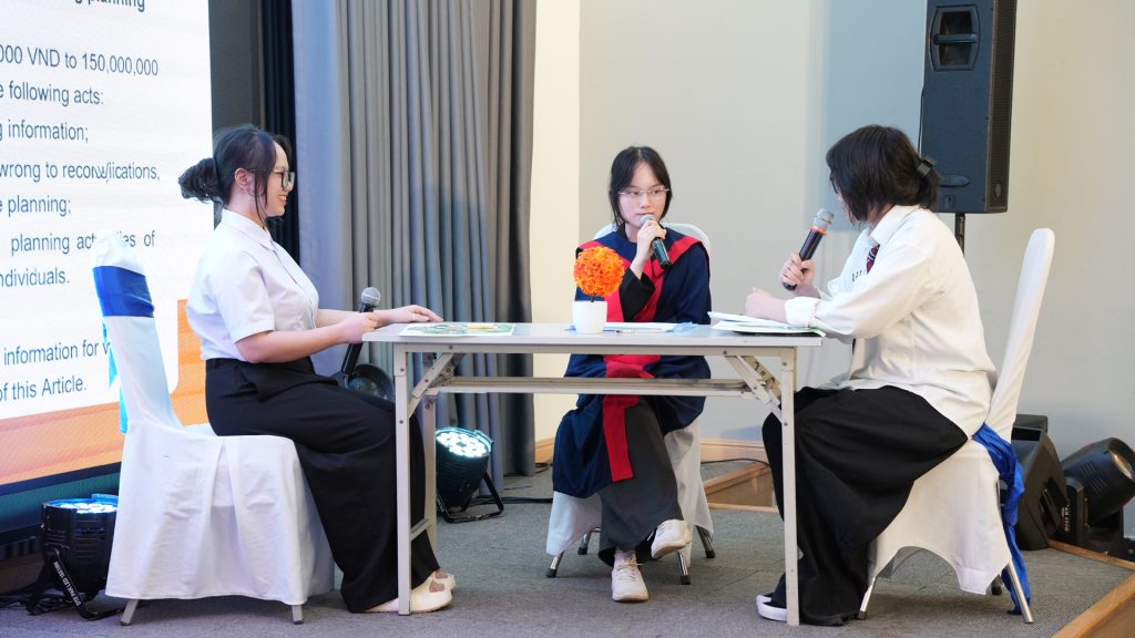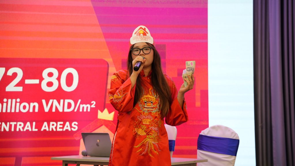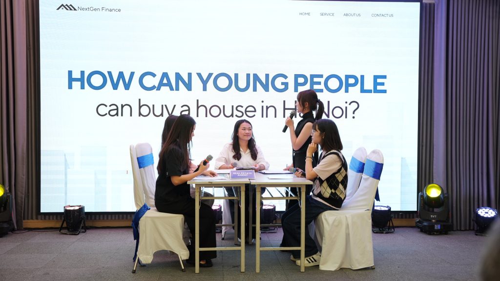 Ở phần thi đầu tiên, các đội nhận đề bài về thị trường bất động sản Hà Nội và cùng nhau đưa ra giải pháp “giảm nhiệt” dựa trên chính sách của nhiều quốc gia như Singapore, Hàn Quốc,…