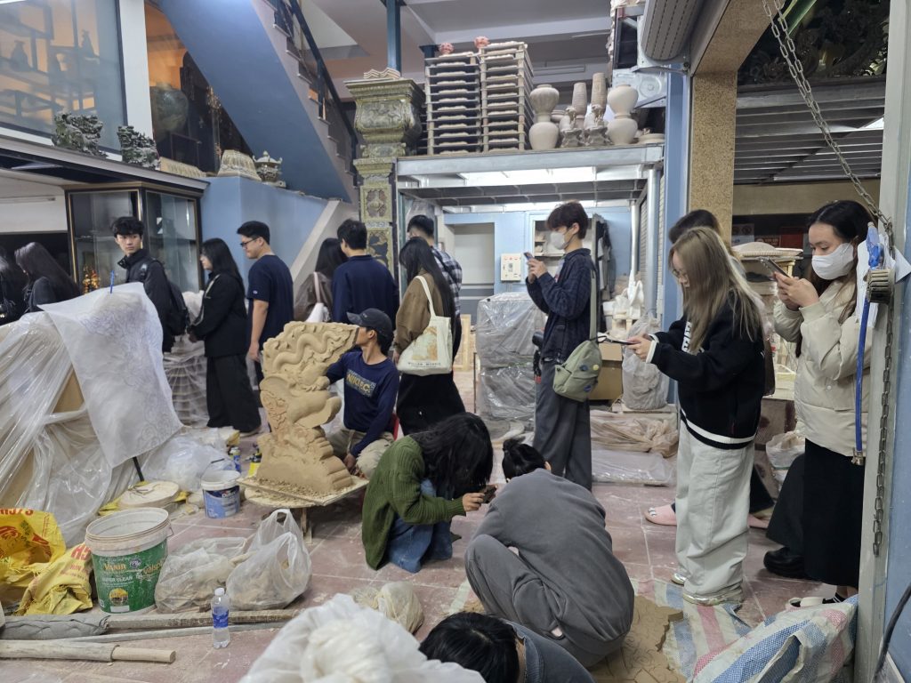 Hoạt động này giúp sinh viên không chỉ học tập kiến thức chuyên môn mà còn hiểu thêm về giá trị văn hóa – lịch sử đặc sắc của một làng nghề truyền thống nổi tiếng của Việt Nam.